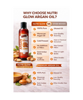 Our Argan Oil is perfect for all hair types, from curly to straight, and is especially beneficial for those with dry or frizzy hair. It penetrates the hair shaft to repair damage, reduce split ends, and add a brilliant shine. Regular use of NutriGlow Argan Oil can help tame frizz, making hair more manageable and soft. Simply apply a few drops to your hair and scalp for a nourishing treatment that leaves your hair looking and feeling healthy.