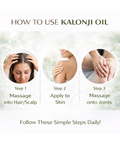 Kalonji Oil is especially beneficial for hair care. Its natural nutrients help to strengthen hair follicles, reduce hair fall, and promote healthy hair growth. Regular application of NutriGlow Kalonji Oil can result in thicker, stronger, and shinier hair. Additionally, its soothing properties help alleviate scalp conditions such as dandruff and dryness, ensuring a healthy scalp environment that supports robust hair growth.