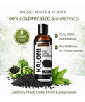 CAUTION: The information provided regarding Kalonji oil (Nigella sativa) is intended for educational purposes only and should not be construed as medical advice. Before incorporating Kalonji oil into your health regimen, we strongly recommend consulting with a healthcare professional, particularly if you are pregnant, nursing, have an existing medical condition, or are currently taking prescription medications. Kalonji oil should not be used as a replacement for conventional medical treatments or therapies. It is not intended to diagnose, treat, cure, or prevent any disease.